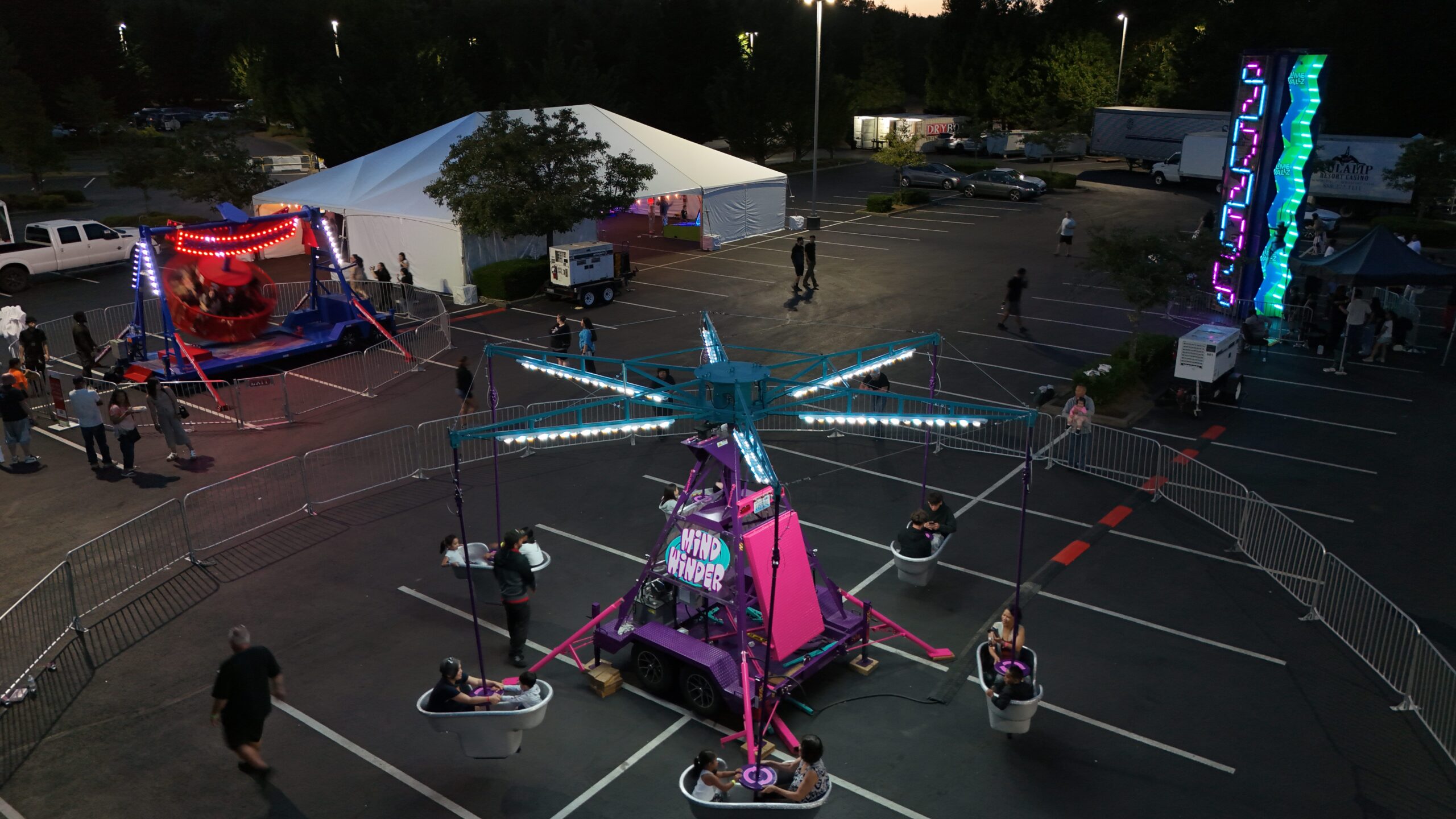 Get ready to twist, turn, and take excitement to the next level with the Mindwinder! This high-energy carnival favorite delivers nonstop thrills as riders control their own spin while the entire ride rotates for an exhilarating wind-up experience. With space for up to 12 passengers, the Mindwinder is perfect for festivals, corporate events, and parties that crave big excitement and bigger smiles. Buckle up and prepare for a ride you won’t forget!